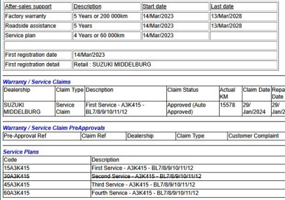 Balance of 200000kms warranty, Balance of 60000kms service plan. See proof of services attached in photos. The 2023 Suzuki Baleno 1.5 GLX Manual is a wellrounded hatchback that brings together style, comfort, and everyday practicality in a way that feels effortless. Its the kind of car that fits seamlessly into your lifestyle, whether youre commuting or heading out for a relaxed drive. With its modern appeal and easytolivewith nature, it offers a driving experience that feels both refined and and dependable, making it a great choice for those who value balance and simplicity.Air conditioningElectric windowsBluetooth connectivityUSB portCITTON CARS is a 35 year, 3rd generation owner run and managed motor dealer. ALL our cars come with a 2month or 3000km WARRANTY and an independent BOSCH 160point inspection. 360 interior and exterior views available on our website. We deliver nationwide. Vehicle finance available. Affordable monthly instalments. ZERO deposit. First payment in 60 days.