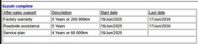 | Service Plan: 60000 KM 18/06/2029